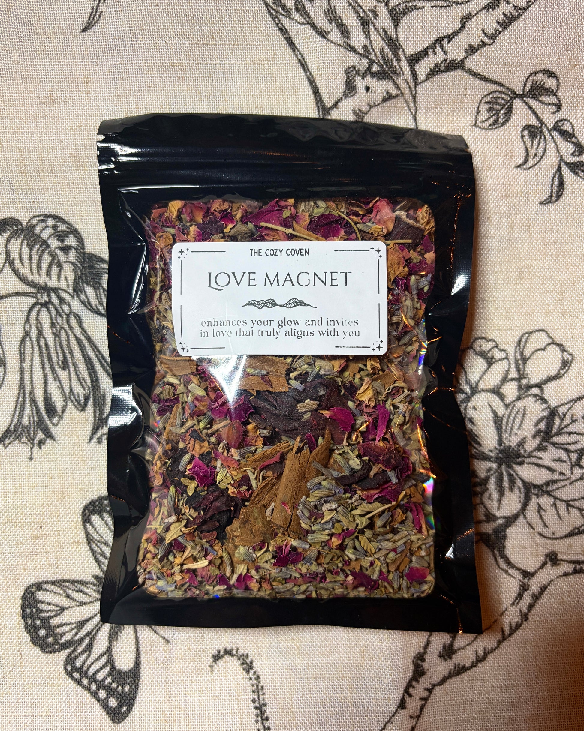 A handcrafted blend to attract romantic energy, deepen emotional connection, open the heart space, and draw in warm, loving vibrations. Designed to support self-love, confidence, attraction work, and relationship intention-setting. Perfect for glamour work, candle magic, love rituals, self-love practices, and drawing in positive attention.